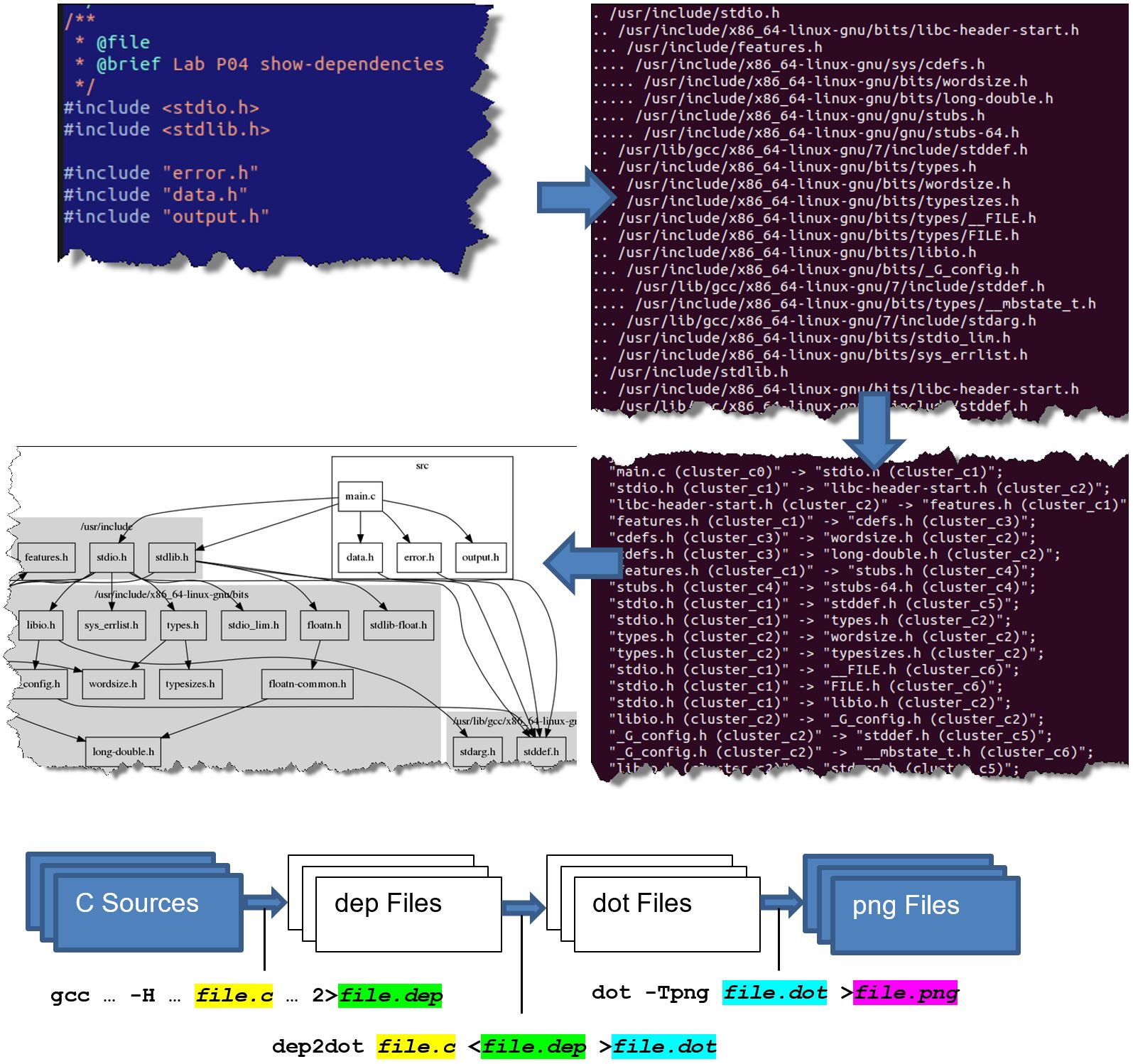 2. dep2dot file.c <file.dep >file.dot (in dieser Aufgabe zu erstellen)