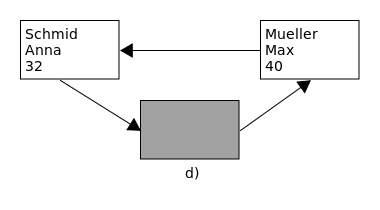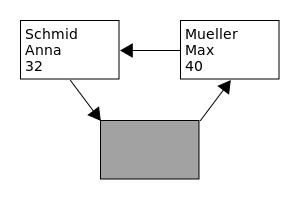 Eine verkettete Liste bedeutet, dass ein Knoten der verketten Liste einen Datensatz einer Person speichert und zusätzlich einen Pointer auf den nächsten Knoten in der Liste aufweist (siehe Abbildung 1). In dieser Pointer Variablen (next in der node_t Struktur unten) steht also einfach die Adresse des nächsten Knotens.