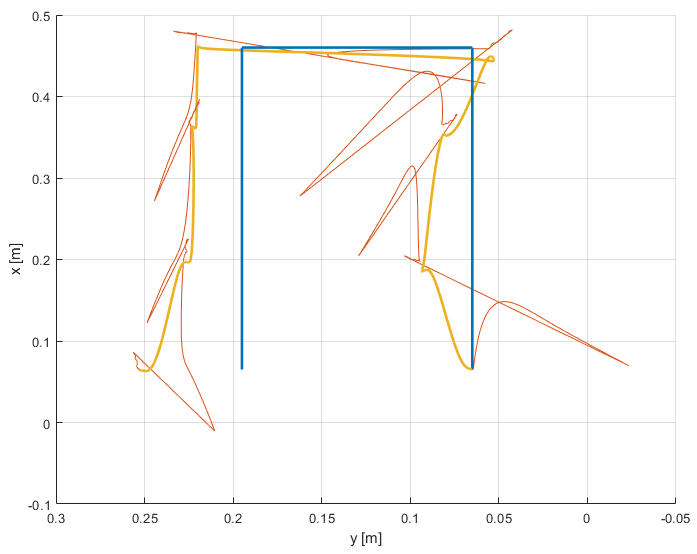 While testing different values, a variance of \( \sigma_\text{pseudo}^\text{(pos)} = 0.05 \) m was found to be a good value. All other parameters were kept the same as in the previous approach.